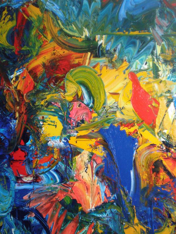 "Melancholies come to me to turn them into passion. Color sensitizes my system. The spatula is my sword, my shield is the color and my inspiration is you. The night becomes my day, and the day is my torture. It is my ritual…my religion. In this city where there’s no sky, and what has not turned gray yet, will be soon, I battle. I work color, light and awareness. I feel free. Nature, religion, love, sex and life dominate my synthesis. With this body of work, I toy with human psyches, with reference to the imagery’s invocation, captured through lived life. The spectator’s past experiences confront the colors in each piece and interact on a very personal plane. The titles of the work create an uncertainty, leaving outsiders wanting to know more, questioning their own senses while transforming the work into a representative image of their existentialism"